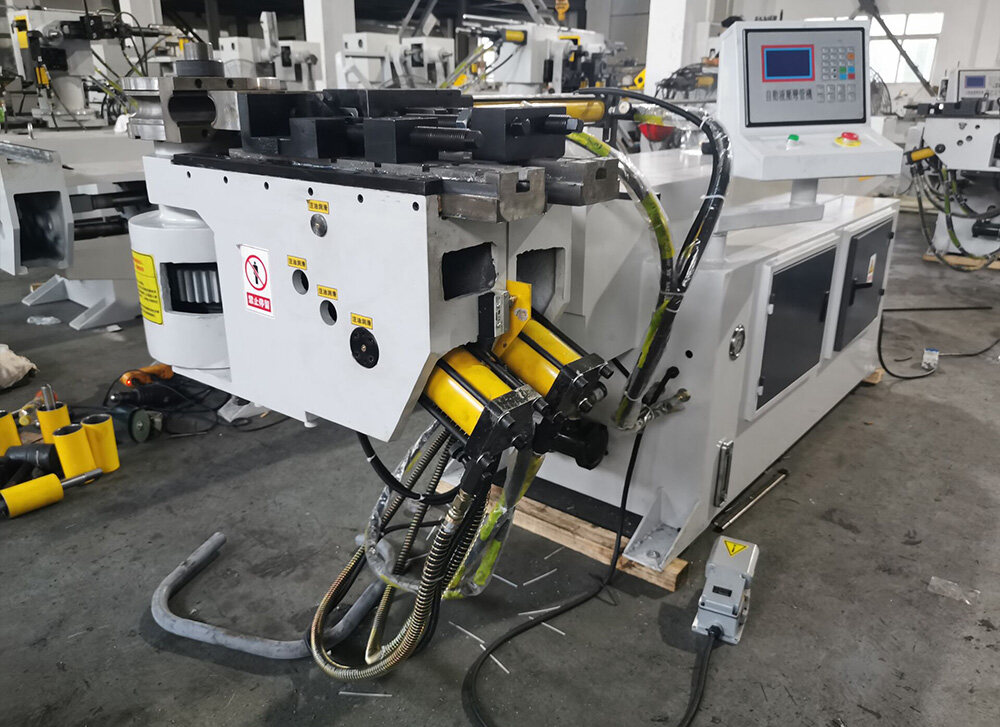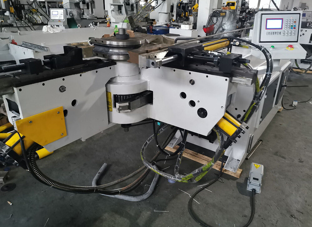 单头液压弯管机 DW63NC详细介绍:一、高速单头液压弯管机,运用微电脑控制,多组程序,多角度设定,使操作简单方便。二、中文字幕显示,人机对话操作,可任意选择手动、半循环、全循环操作方式。三、采用高性能的进口液压阀与电气元件。四、配有大容量的冷却系统,有效控制工作温度。五、整机具有操作方便、性能稳定、工作效率高、安全系数高等特点,是管件加工行业的理想设备。六、可任意选择手动、半自动操作方式,移动式脚踏开关兼备启动、紧停两种功能。