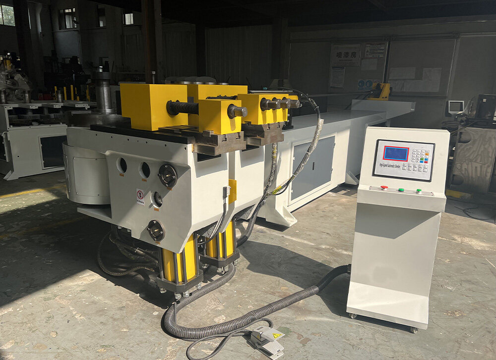 单头液压弯管机DW130NC详细介绍:一、高速单头液压弯管机,运用微电脑控制,多组程序,多角度设定,使操作简单方便。二、中文字幕显示,人机对话操作,可任意选择手动、半循环、全循环操作方式。三、采用高性能的进口液压阀与电气元件。四、配有大容量的冷却系统,有效控制工作温度。五、整机具有操作方便、性能稳定、工作效率高、安全系数高等特点,是管件加工行业的理想设备。六、可任意选择手动、半自动操作方式,移动式脚踏开关兼备启动、紧停两种功能。