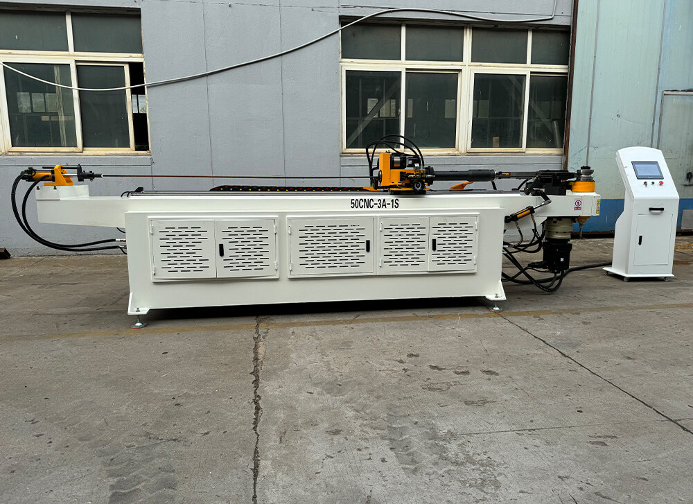 全自动弯管机DW50CNC-3A-1S详细介绍:一、触摸屏显示,数控电脑操作,可储存500组记忆二、反弹补偿值设定程序,程序及加工资料保密功能三、转角、送料、弯管均为伺服控制.四、操作系统配有口令、钥匙,以及数量和用时记录,便于生产管理五、具有慢弯、慢抽芯功能六、错误信息在荧幕上显示,帮助操作者立即清除