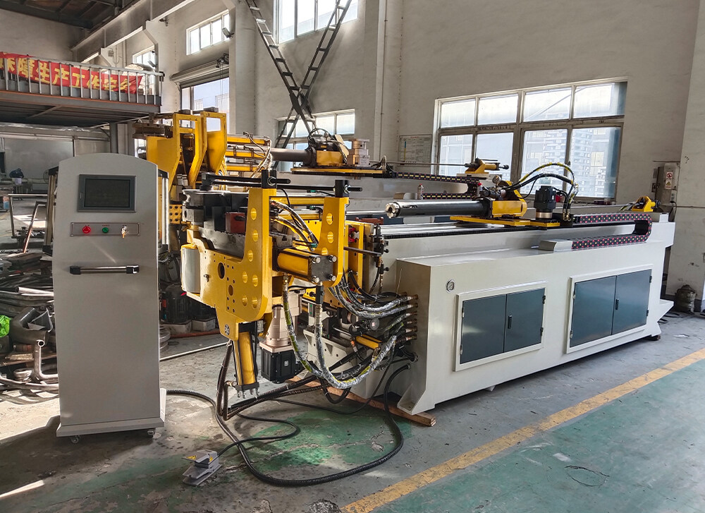 全自动弯管机DW63CNC-4A-2S详细介绍:一、触摸屏显示,数控电脑操作,可储存500组记忆二、反弹补偿值设定程序,程序及加工资料保密功能三、送料、转角、换模、弯管均可为伺服控制四、操作系统配有口令、钥匙,以及数量和用时记录,便于生产管理五、具有慢弯、慢抽芯功能六、错误信息在荧幕上显示,帮助操作者立即清除