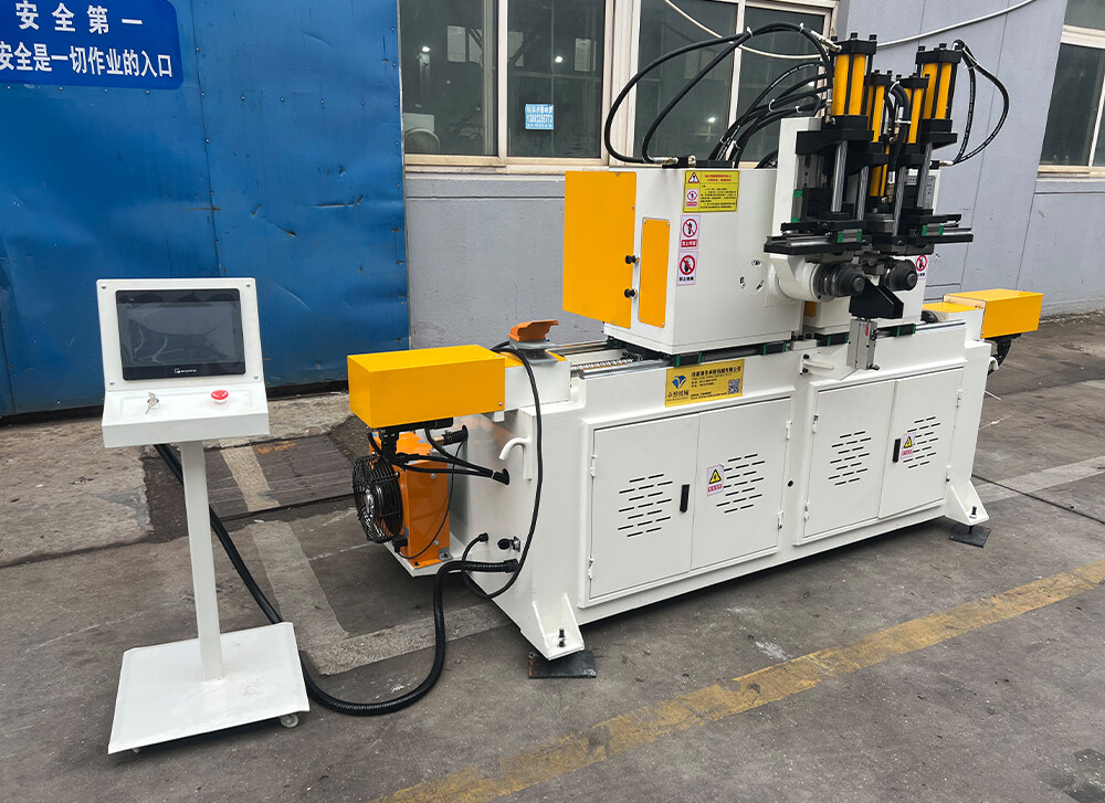 自动上下料双伺服弯管机(双弯机)是一种集成自动化上下料、双工位弯管加工的高精度设备,通过伺服驱动和智能化控制实现高效、精准的管材弯曲。以下是其核心特点及应用场景的详细介绍:
